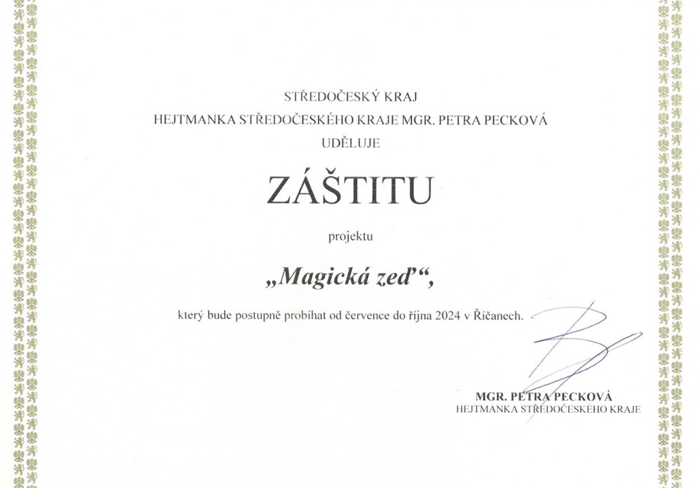 Našemu projektu udělila záštitu hejtmanka Středočeského kraje paní Petra Pecková. Vážíme si její podpory.